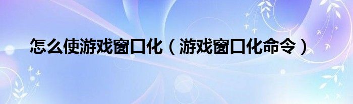 关于怎么使游戏窗口化,游戏窗口化命令这个很多人还不知道,今天菲菲来为大家解答以上的问题,现在让我们一起来看看吧!