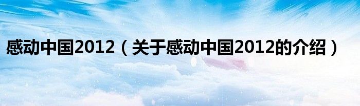 大家好,今天小乐来为大家解答以上的问题。感动中国2012,关于感动中国2012的介绍很多人还不知道,现在让我们一起来看看吧!