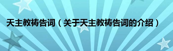 大家好,今天小乐来为大家解答以上的问题。天主教祷告词,关于天主教祷告词的介绍很多人还不知道,现在让我们一起来看看吧!