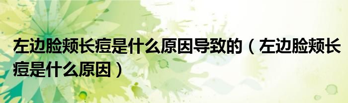 关于左边脸颊长痘是什么原因导致的,左边脸颊长痘是什么原因这个很多人还不知道,今天菲菲来为大家解答以上的问题,现在让我们一起来看看吧!