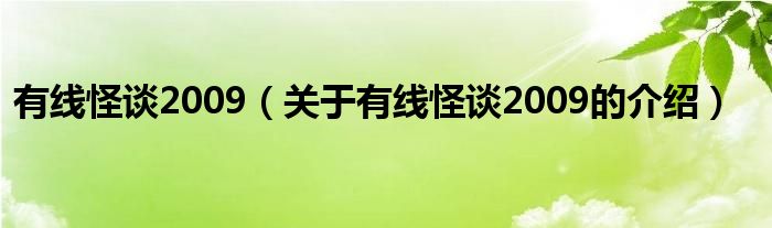 大家好,今天小乐来为大家解答以上的问题。有线怪谈2009,关于有线怪谈2009的介绍很多人还不知道,现在让我们一起来看看吧!
