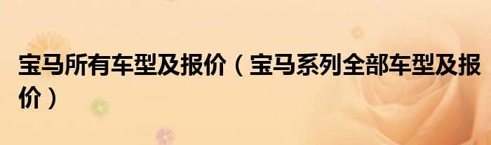 关于宝马所有车型及报价,宝马系列全部车型及报价这个很多人还不知道,今天菲菲来为大家解答以上的问题,现在让我们一起来看看吧!