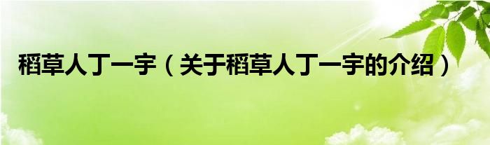 稻草人丁一宇(关于稻草人丁一宇的介绍)