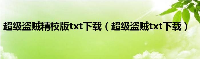 超级盗贼精校版txt下载(超级盗贼txt下载)