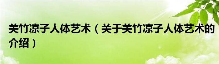 大家好,今天小乐来为大家解答以上的问题。美竹凉子人体艺术,关于美竹凉子人体艺术的介绍很多人还不知道,现在让我们一起来看看吧!