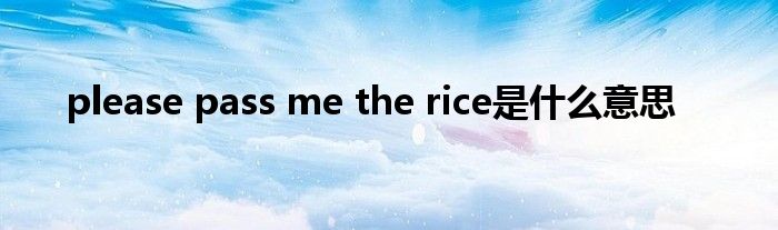 关于please pass me the rice是什么意思这个很多人还不知道,今天菲菲来为大家解答以上的问题,现在让我们一起来看看吧!