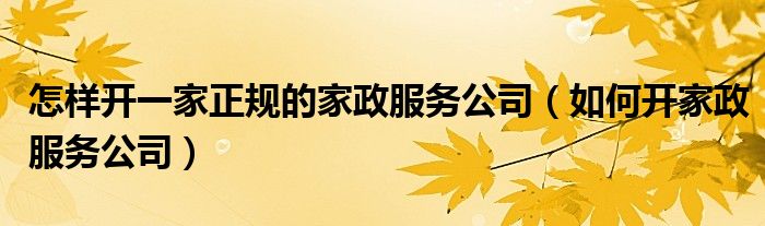 怎样开一家正规的家政服务公司(如何开家政服务公司)