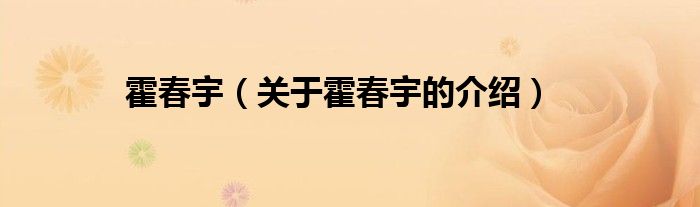 大家好,今天小乐来为大家解答以上的问题。霍春宇,关于霍春宇的介绍很多人还不知道,现在让我们一起来看看吧!