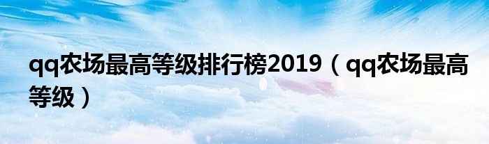 qq农场最高等级排行榜2019(qq农场最高等级)