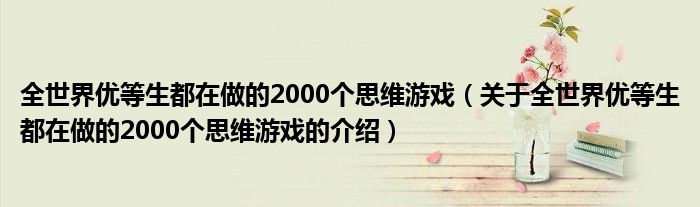 全世界优等生都在做的2000个思维游戏(关于全世界优等生都在做的2000个思维游...