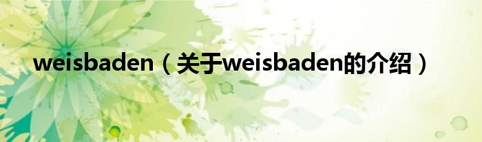 大家好,今天小乐来为大家解答以上的问题。weisbaden,关于weisbaden的介绍很多人还不知道,现在让我们一起来看看吧!