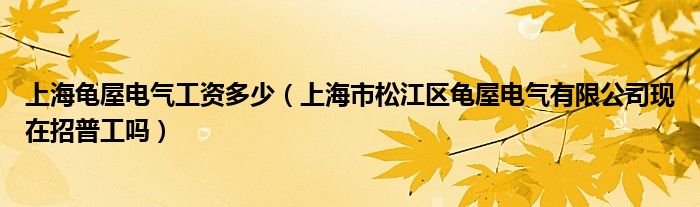 关于上海龟屋电气工资多少,上海市松江区龟屋电气有限公司现在招普工吗这个很多人还不知道,今天菲菲来为大家解答以上的问题,现在让我们一起来看看吧!