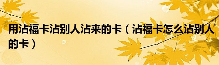 用沾福卡沾别人沾来的卡,沾福卡怎么沾别人的卡很多人还不知道,乐乐来为大家解答以上问题,现在让我们一起来看看吧!