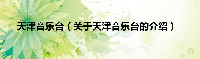 大家好,今天小乐来为大家解答以上的问题。天津音乐台,关于天津音乐台的介绍很多人还不知道,现在让我们一起来看看吧!