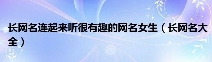 长网名连起来听很有趣的网名女生,长网名大全很多人还不知道,乐乐来为大家解答以上问题,现在让我们一起来看看吧!