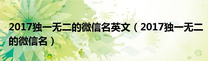 2017独一无二的微信名英文,2017独一无二的微信名很多人还不知道,乐乐来为大家解答以上问题,现在让我们一起来看看吧!