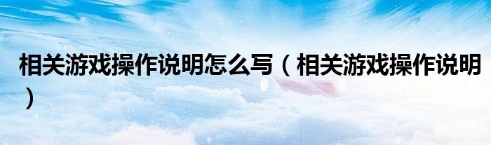 相关游戏操作说明怎么写,相关游戏操作说明很多人还不知道,乐乐来为大家解答以上问题,现在让我们一起来看看吧!