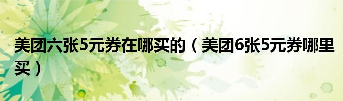 大家好,小晋来为大家解答以下问题,关于美团六张5元券在哪买的,美团6张5元券哪里买很多人还不知道,今天让我们一起来看看吧!