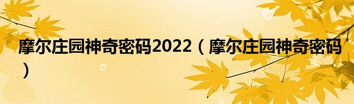 摩尔庄园神奇密码2022,摩尔庄园神奇密码很多人还不知道,乐乐来为大家解答以上问题,现在让我们一起来看看吧!