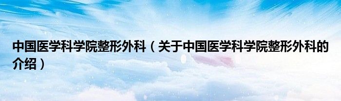 大家好,小都来为大家解答以上的问题。中国医学科学院整形外科,关于中国医学科学院整形外科的介绍很多人还不知道,现在让我们一起来看看吧!