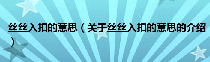大家好,小都来为大家解答以上的问题。丝丝入扣的意思,关于丝丝入扣的意思的介绍很多人还不知道,现在让我们一起来看看吧!