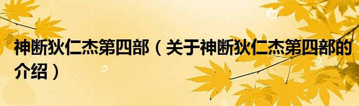 大家好,小都来为大家解答以上的问题。神断狄仁杰第四部,关于神断狄仁杰第四部的介绍很多人还不知道,现在让我们一起来看看吧!