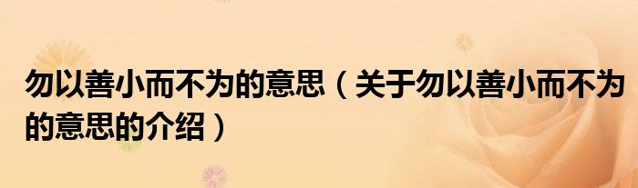 大家好,小都来为大家解答以上的问题。勿以善小而不为的意思,关于勿以善小而不为的意思的介绍很多人还不知道,现在让我们一起来看看吧!