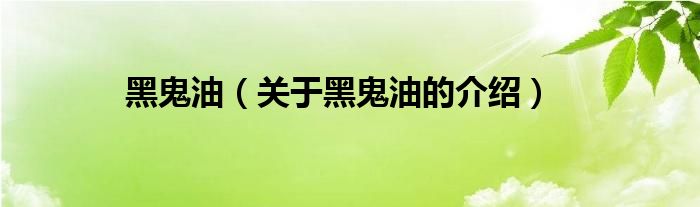 大家好,小都来为大家解答以上的问题。黑鬼油,关于黑鬼油的介绍很多人还不知道,现在让我们一起来看看吧!