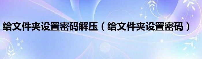 大家好,雨雨来为大家解答以上问题,给文件夹设置密码解压,给文件夹设置密码很多人还不知道,现在让我们一起来看看吧!
