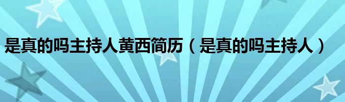 关于是真的吗主持人黄西简历,是真的吗主持人这个很多人还不知道,今天菲菲来为大家解答以上的问题,现在让我们一起来看看吧!