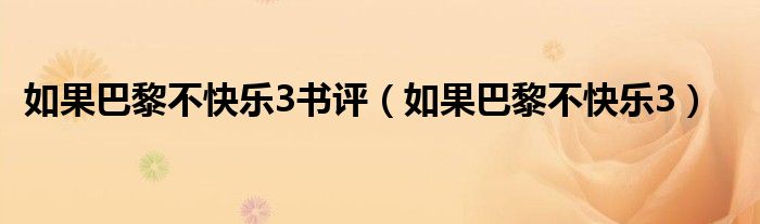 如果巴黎不快乐3书评(如果巴黎不快乐3)