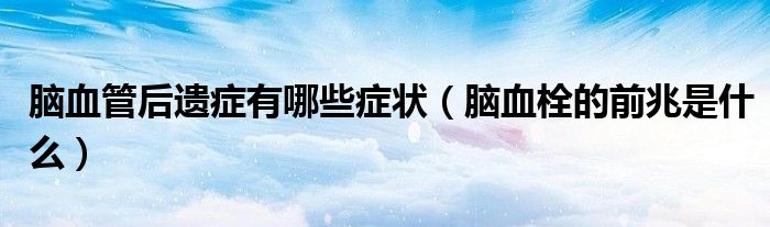 大家好,乐天来为大家解答以下的问题,脑血管后遗症有哪些症状,脑血栓的前兆是什么很多人还不知道,现在让我们一起来看看吧!