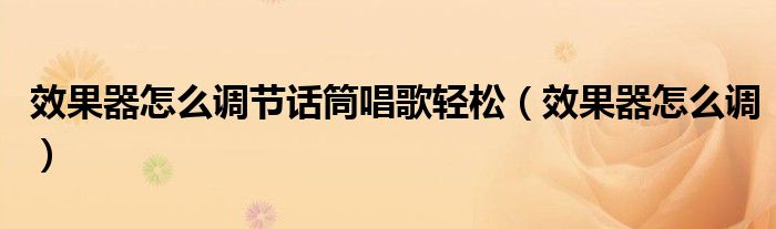 关于效果器怎么调节话筒唱歌轻松,效果器怎么调这个很多人还不知道,今天菲菲来为大家解答以上的问题,现在让我们一起来看看吧!