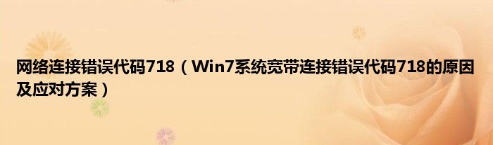 大家好,综合小编来为大家讲解下网络连接错误代码718,Win7系统宽带连接错误代码718的原因及应对方案这个很多人还不知道,现在让我们一起来看看吧!