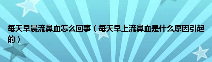 1、 's每天早上流鼻血可能是由于慢性鼻炎和鼻粘膜糜烂。因为晚上睡觉的时候通过鼻腔呼吸,所以鼻粘膜是干的。如果早上洗脸的时候摸鼻子,很容易增加毛细血管的脆性,导致流鼻血。