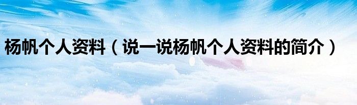 夏弥来为大家解答以下的问题,杨帆个人资料,说一说杨帆个人资料的简介,现在让我们一起来看看吧!