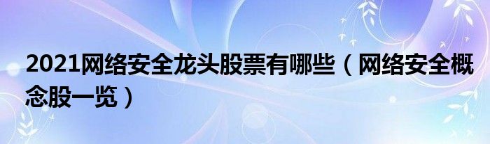 关于2021网络安全龙头股票有哪些,网络安全概念股一览这个很多人还不知道,今天菲菲来为大家解答以上的问题,现在让我们一起来看看吧!