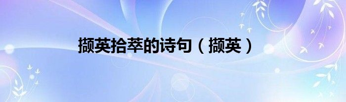 关于撷英拾萃的诗句,撷英这个很多人还不知道,今天菲菲来为大家解答以上的问题,现在让我们一起来看看吧!