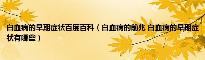 白血病的早期症状百度百科(白血病的前兆白血病的早期症状有哪些)