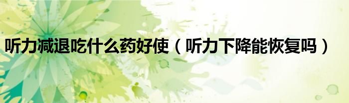 大家好,乐天来为大家解答以下的问题,听力减退吃什么药好使,听力下降能恢复吗很多人还不知道,现在让我们一起来看看吧!