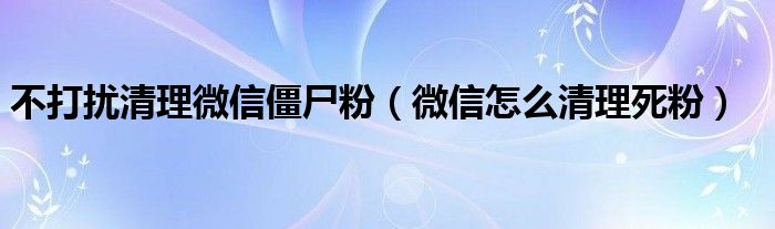 不打扰清理微信僵尸粉(微信怎么清理死粉)