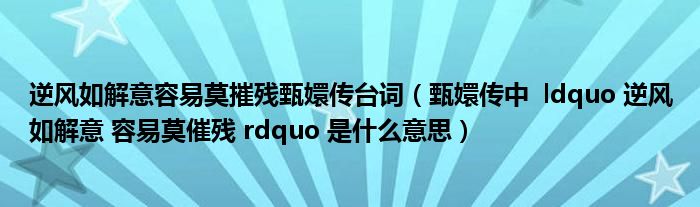 逆风如解意容易莫摧残甄嬛传台词(甄嬛传中 ldquo 逆风如解意 容易莫催残 rdquo 是什么意思)