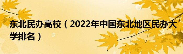 一、2022年中国东北地区民办大学排名