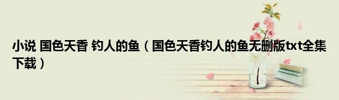 关于小说 国色天香 钓人的鱼,国色天香钓人的鱼无删版txt全集下载这个很多人还不知道,今天菲菲来为大家解答以上的问题,现在让我们一起来看看吧!