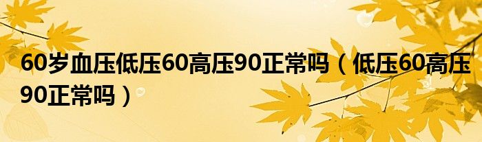 大家好,乐天来为大家解答以下的问题,60岁血压低压60高压90正常吗,低压60高压90正常吗很多人还不知道,现在让我们一起来看看吧!