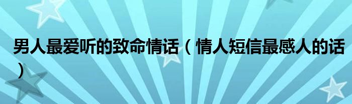 大家好,我是小科,我来为大家解答以上问题。男人最爱听的致命情话,情人短信最感人的话很多人还不知道,现在让我们一起来看看吧!