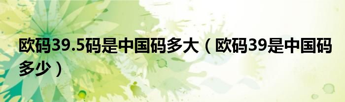 大家好,小联来为大家解答以上的问题。欧码39.5码是中国码多大,欧码39是中国码多少这个很多人还不知道,现在让我们一起来看看吧!