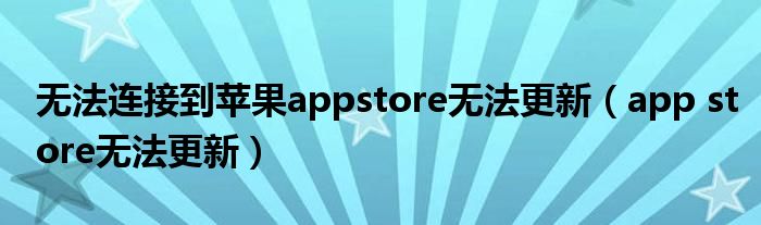 今天小饼为大家解答以下问题,关于无法连接到苹果appstore无法更新,app store无法更新很多人还不知道,现在让我们一起来看看吧!