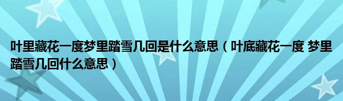 大家好,小联来为大家解答以上的问题。叶里藏花一度梦里踏雪几回是什么意思,叶底藏花一度 梦里踏雪几回什么意思这个很多人还不知道,现在让我们一起来看看吧!