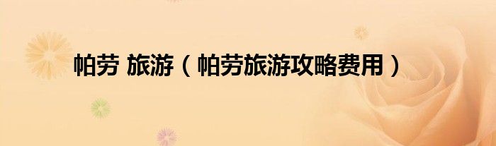 帕劳旅游(帕劳旅游攻略费用)